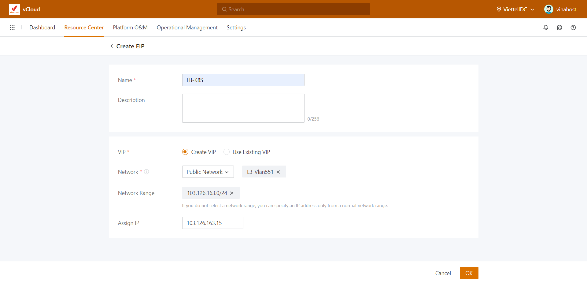 - Tạo EIP cho máy chủ LoadBlancer và máy chủ Kubespray để có thể kết nối từ internet đến 2 máy chủ này