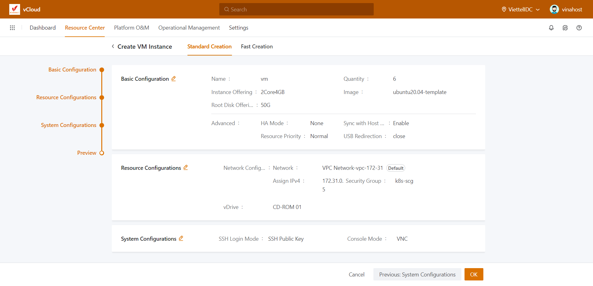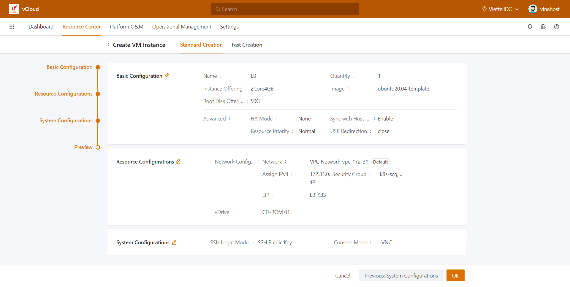 Chuẩn bị 08 máy chủ trên vCloud của Vinahost (là các VM chạy Ubuntu 20.04), cụ thể như sau: