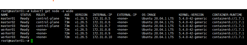 Ví dụ, thử thực thi lệnh sau khi ssh vào master01, nếu chưa thể kết nối được với các node cần add lại ssh-key lên tất cả các node