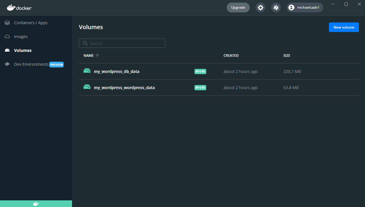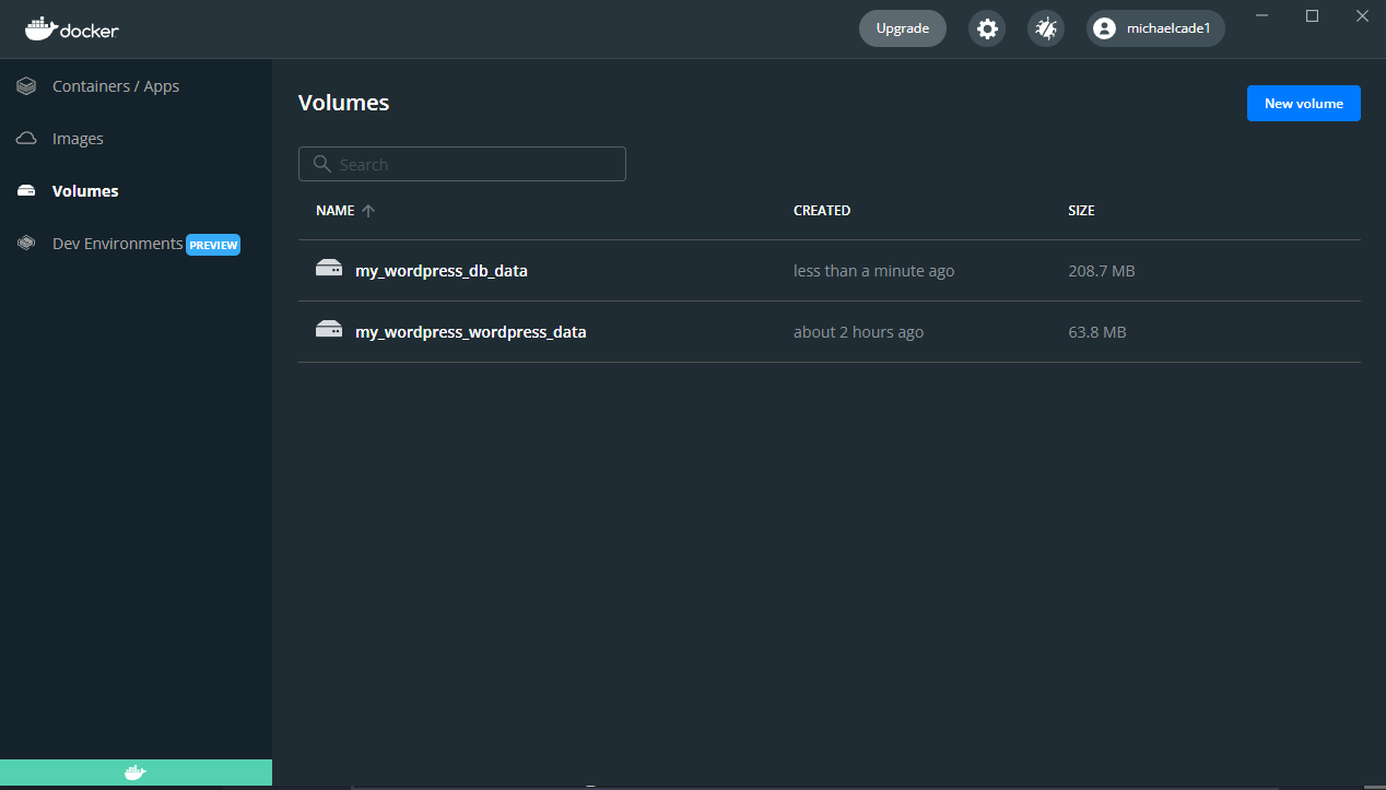 Chúng ta có thể xác nhận trong Docker Desktop rằng volumes của chúng ta vẫn còn đó.