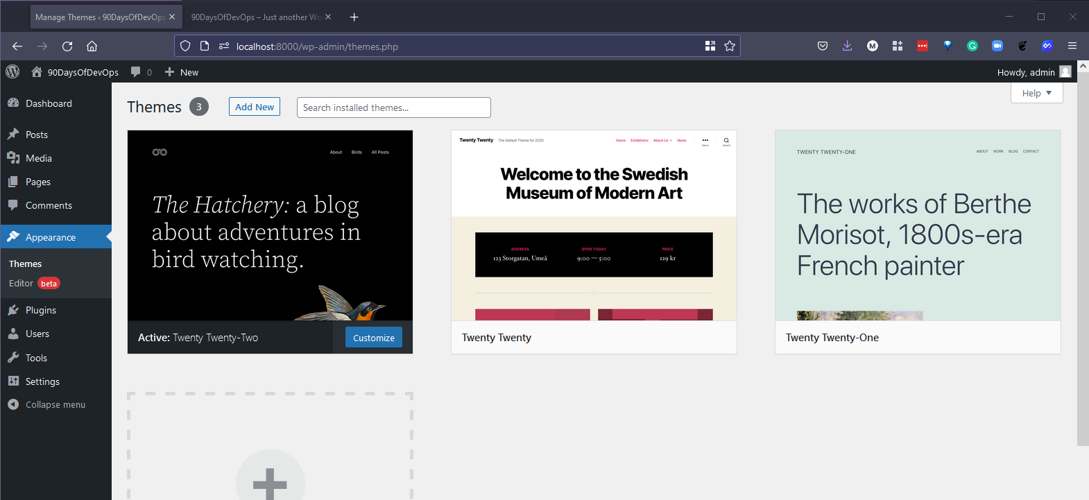 Theme wordpress hiện tại của tôi là "Twenty Twenty-Two" và tôi muốn thay đổi nó thành "Twenty Twenty", chúng ta có thể thực hiện những thay đổi đó trong bảng điều khiển.