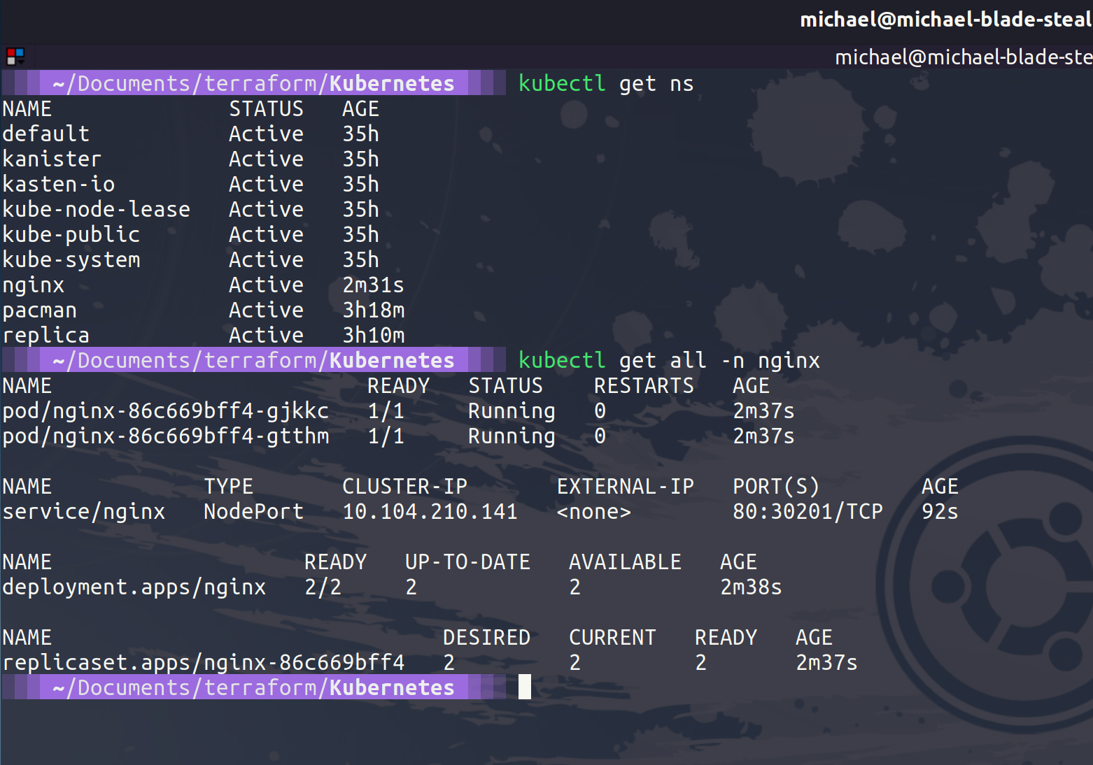 Bây giờ chúng ta có thể sử dụng kubectl như đã được hiển thị trong các phần trước. Tuy nhiên, việc sử dụng Terraform trong môi trường Kubernetes có một số lợi ích.