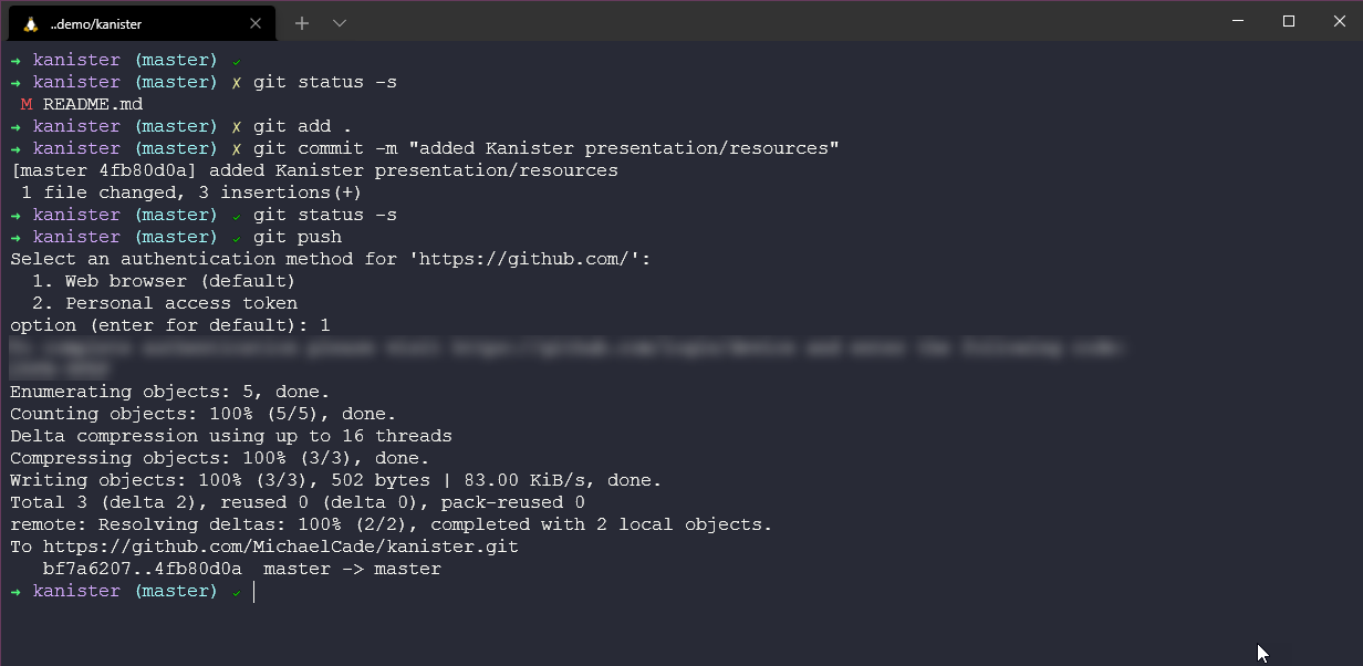Chúng ta không có quyền để đẩy trực tiếp các thay đổi trở lại kho lưu trữ của Kanister, vì vậy chúng ta phải đi theo con đường này. Bây giờ sau khi chúng ta hài lòng với những thay đổi cùa mình, chúng ta có thể chạy quả một số lệnh phổ biến của git.